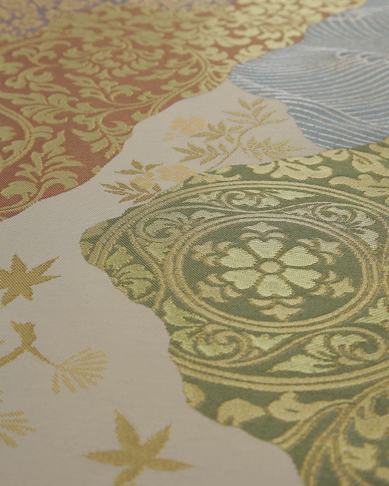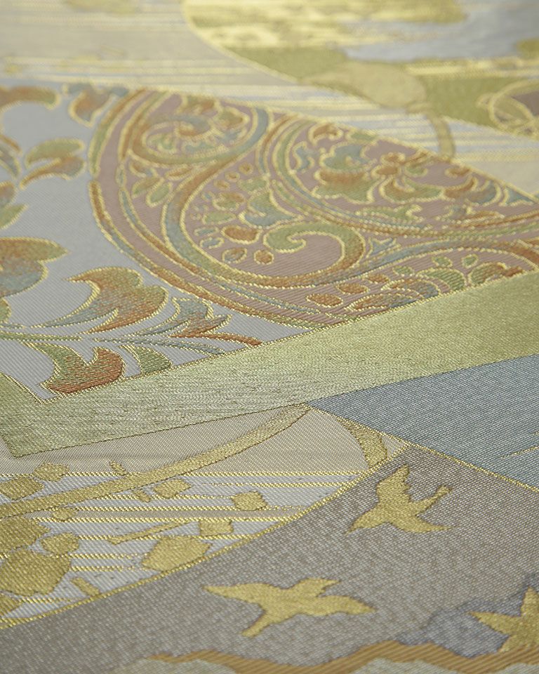 1930年創業の西陣織帯地メーカー。古代染色ロマンを蘇らせた「じゅらく帝王紫」をはじめとするアートな帯をご紹介いたします