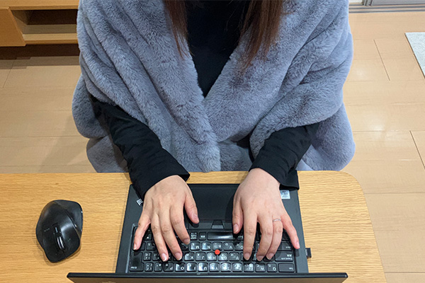 パソコンで作業するとき、どうしても袖元がきになって腕まくりをしてしまうのですが、このケープならそのクセのままで快適に過ごせます。