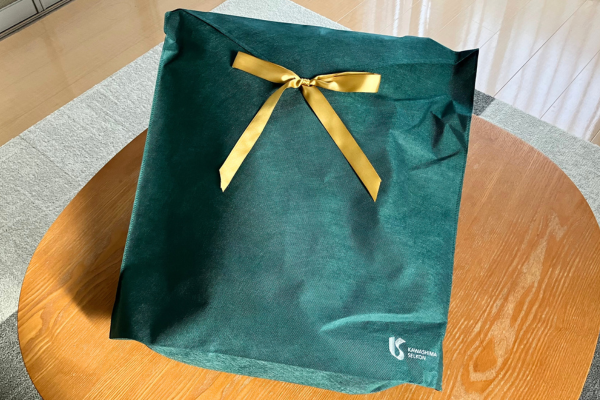 今回、自分用ですがギフトラッピングで頼んでみました!リボン付きの不織布の袋に入っています。