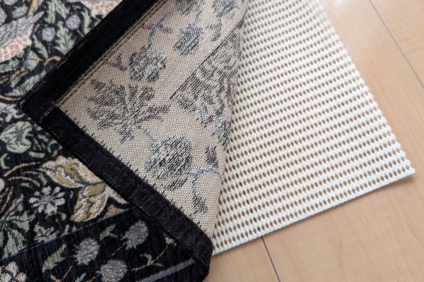 床材を選ばず使える一方で、ご使用場所によっては家具で押さえていただいたり、市販の滑り止めシートとの併用をおすすめしています。
