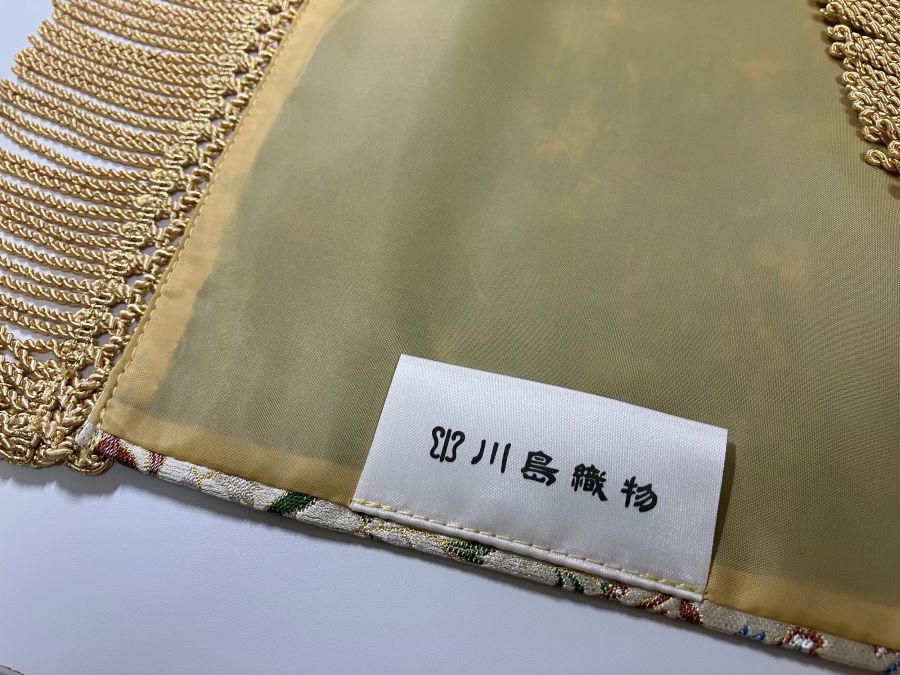 裏面はポリエステルとなっております。「川島織物」のタグが付いています。