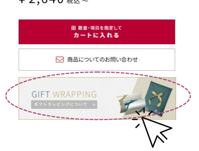 『GIFT WRAPPING/ギフトラッピングについて』の画像バナーをクリックすると