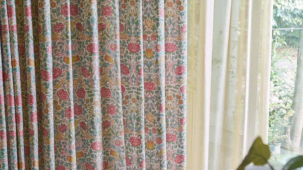 クラシックな魅力とナチュラルなやさしさをあわせ持つモリスのカーテン。