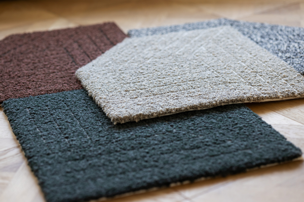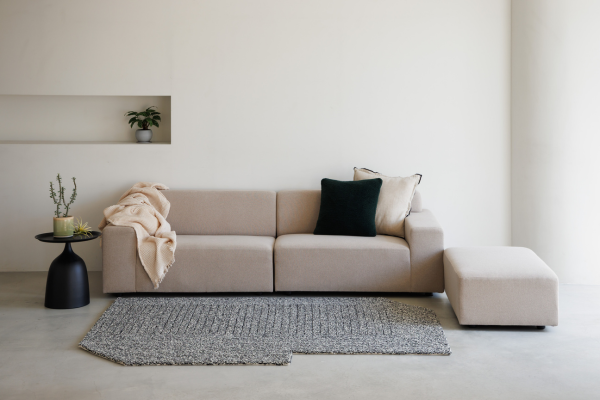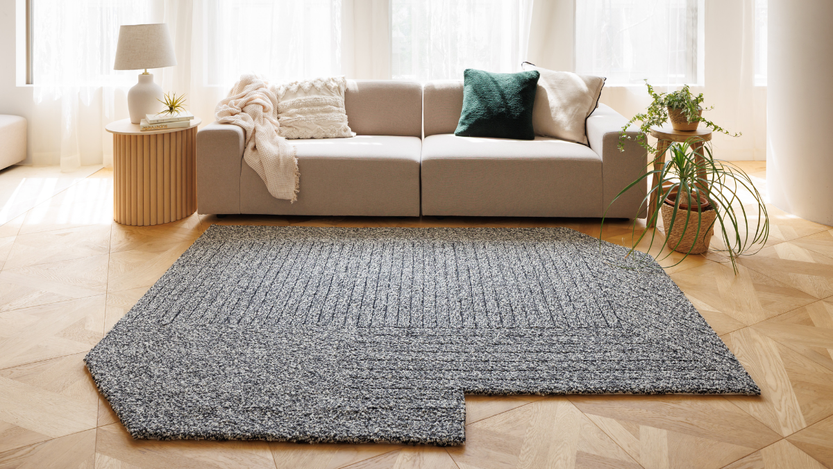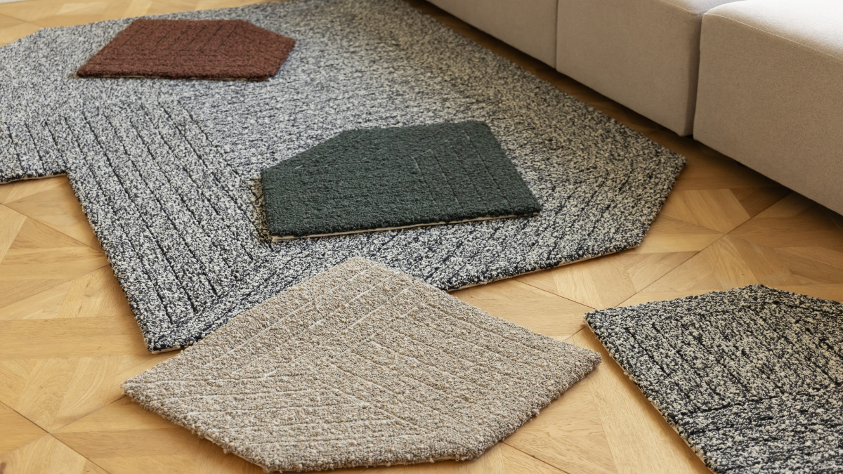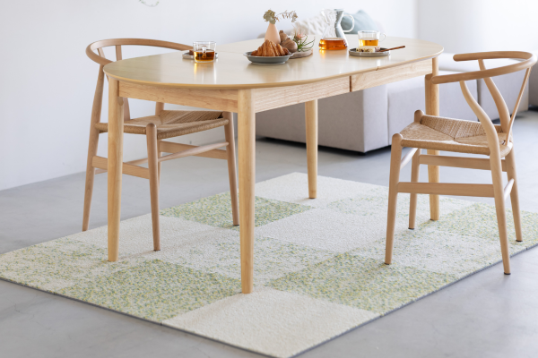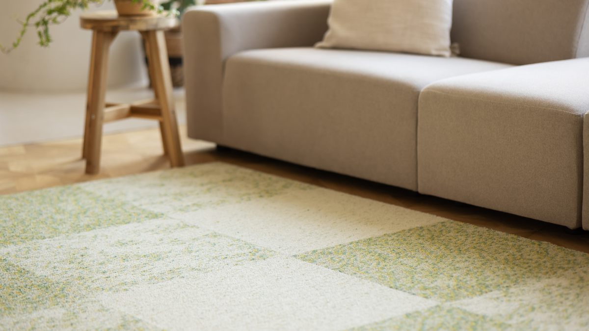裏面に滑り止めが付いた50㎝×50㎝の大きさで、空間の雰囲気や用途に合わせて、さまざまなサイズや形に自由に組み合わせて配置することができます。