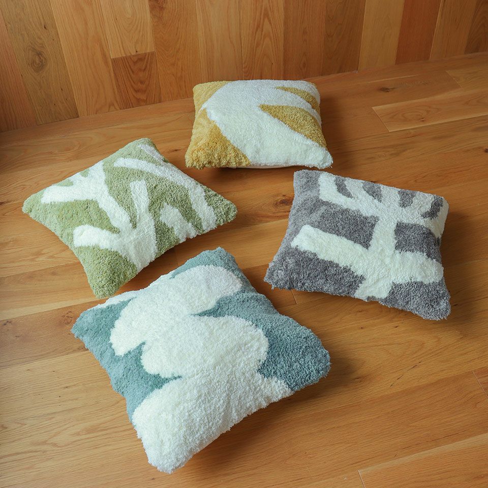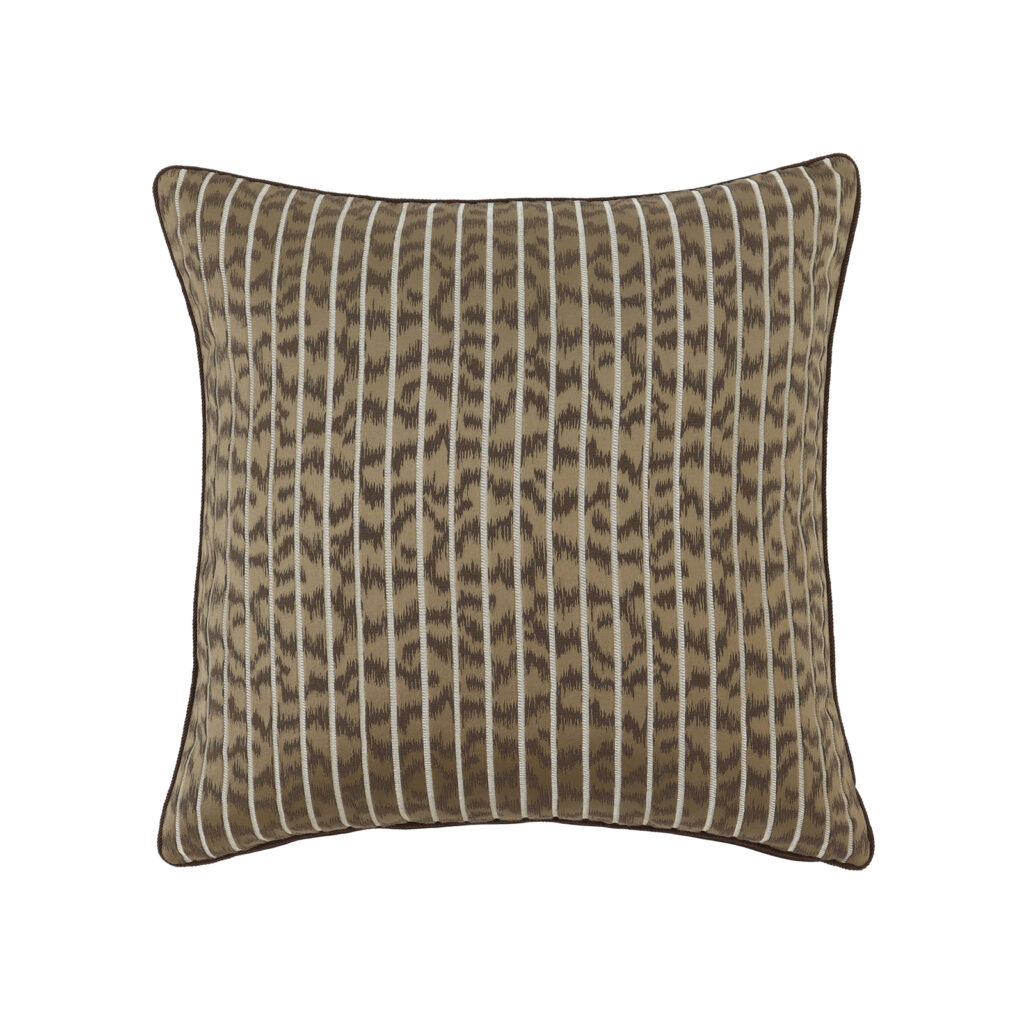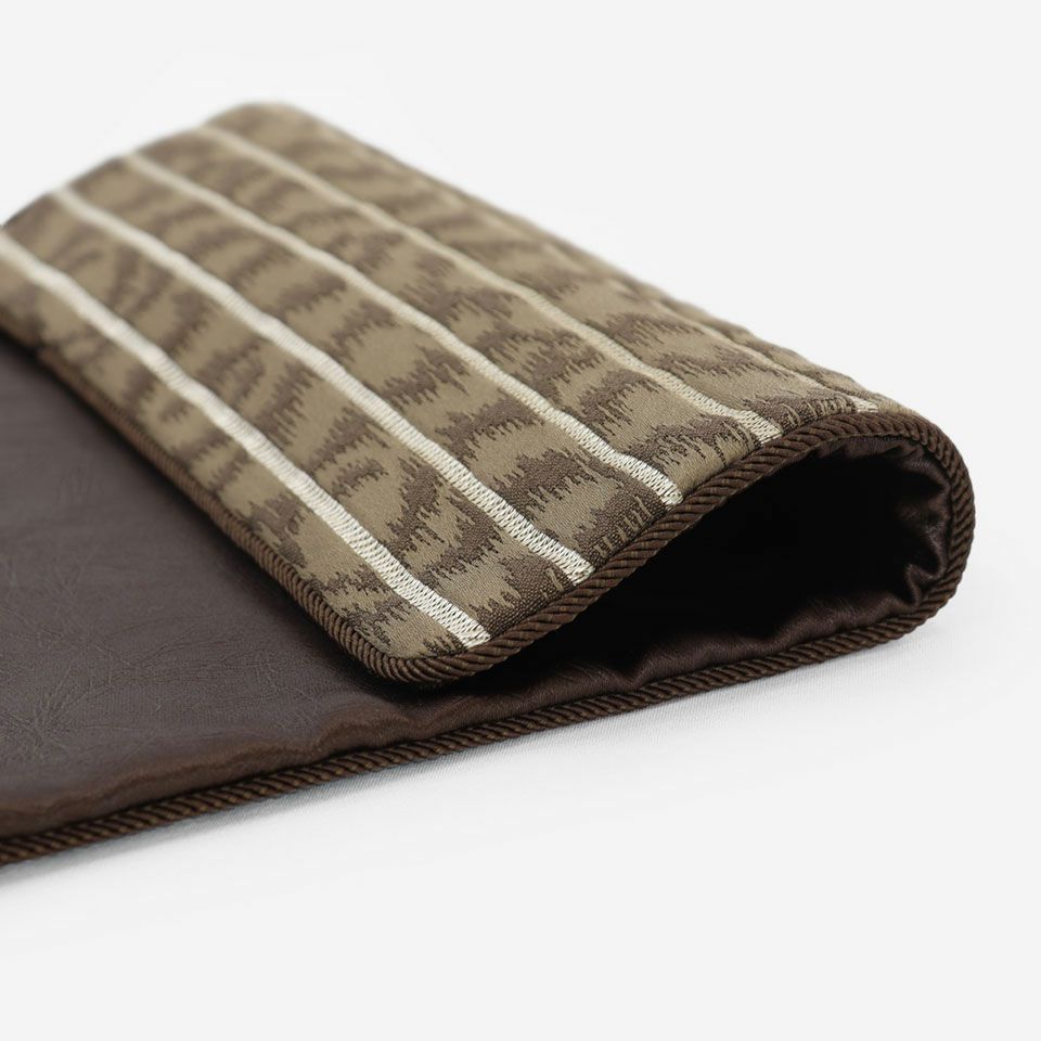 メタリックなラインのコントラストがサテンのジャカードスキンの色調を引き立てた、大人なインテリアにピッタリのアイテムです。フェイクファーとのコーディネートアイテムとしてもお楽しみいただけます。