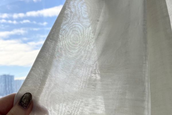 とろみのある生地が、やわらかく縦に流れ、 見る角度や時間帯によって 表情を少しずつ変えていく遮熱レースです。