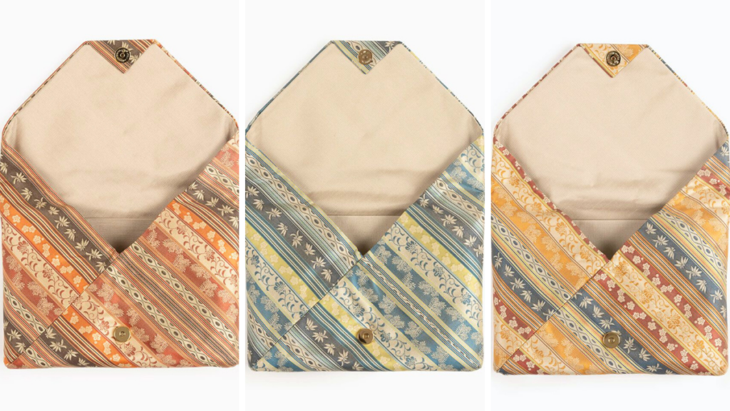 川島織物 帛紗バッグ 瑞祥小紋(カラー展開:左から赤、ブルー、白茶)