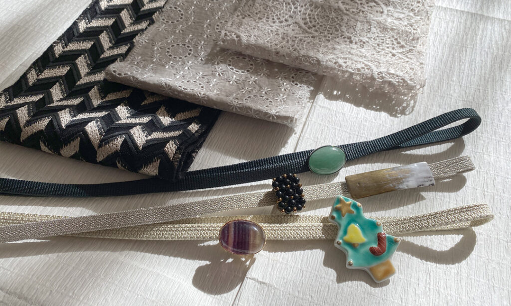 - 帯留めで遊ぶ:雪の結晶、トナカイ、ベル、リースなど、クリスマスモチーフのブローチを帯留めに代用するだけで、一気にホリデー気分が高まります。