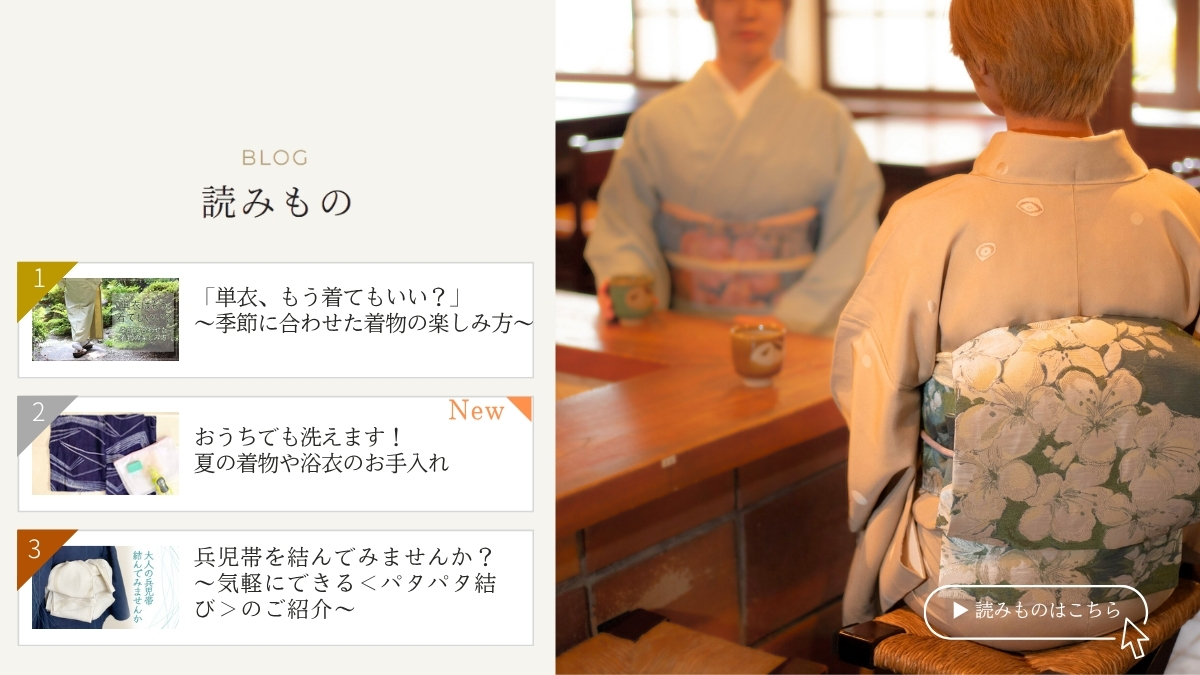 着物の着方のオンラインレッスンを開催しています。ご自分のペースで、無理なく練習ができるレッスンで、着物の一歩を始めてみませんか?